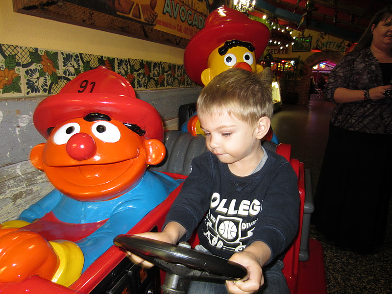 Ryan is always a ball of energy. He loved the fish tank in the front of the restaurant and had to take several trips up front to see it.